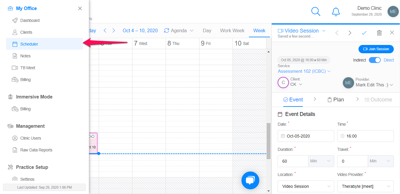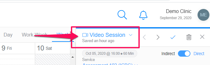 - Schedule and event and et event to "Video session"