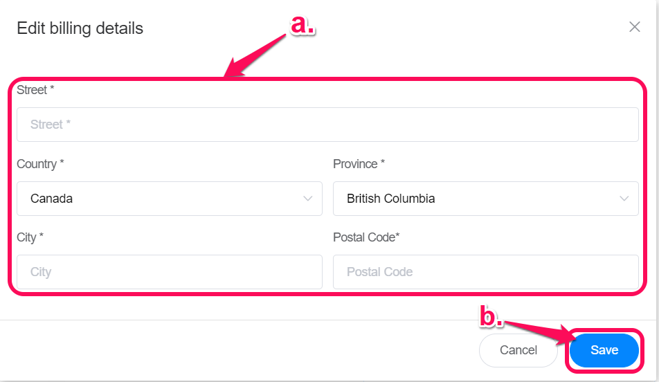 - Notice the Edit Billing Details modal appearing. Do the following: