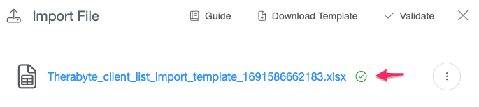 - Once the validation is successful, you'll see a green check mark next to the file name. If there are any issues, you'll be prompted with an error message to help you fix the missing/incorrect entry.