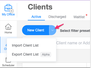 - Look for the drop-down menu located beside the "New Client" button within the "Client" tab.