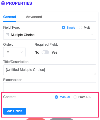 • Single Option: Allows only one answer (e.g., for dropdowns or radio buttons).