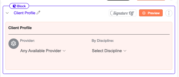 Client ProfileCollects essential client details such as name, contact information, and demographics. This block is only available in Self-Intake Forms and is designed to automatically populate client records.